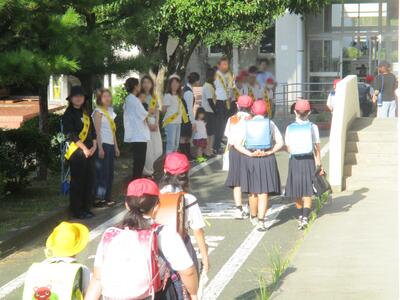 朝から明るい「おはようございます」の声が響きました。今日は、PTAあいさつ運動の日。早朝から委員の皆さんにご協力いただき、運営委員の児童も一緒になって、子どもたちにたくさんのあいさつを届けてくださいました。少し照れている人もいましたね。笑顔の広がる朝になりました。ありがとうございました。