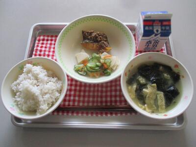 今日の給食のおかずは「夏のさっぱり味噌汁、白身魚のごまだれかけ、野菜の甘酢和え」でした。さっぱり味の味噌汁に、しっかり味の白身魚、甘酢っぱさも加わり、和食の美味しさを味わえた献立でした。