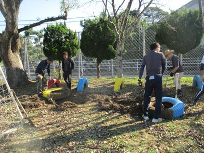 また、資源回収の後には、歴代PTA会長の会と執行部の皆様によるボランティア美化作業がありました。体育館裏からプール横の草刈りを中心に総勢12名で作業を進められたので、あっという間にきれいになりました。「子どもたちのため」「子どもが世話になった学校だけん」と汗をふきながら言ってくださった皆様、本当にありがとうございました。