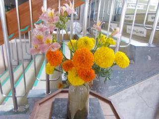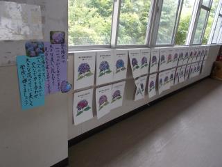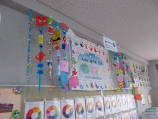5年生教室前には、家庭科で作った作品や図工の作品が掲示されていました。