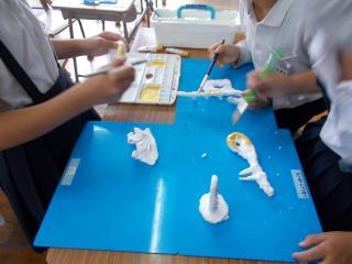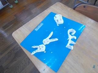 その中に出てくる登場人物や鍵などを紙粘土でつくっていました。