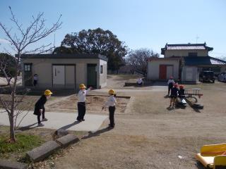昼休みにはたくさんの子どもたちが校庭で遊んでいました。