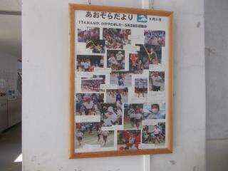 お昼の放送で紹介し、玄関前にも掲示しています。