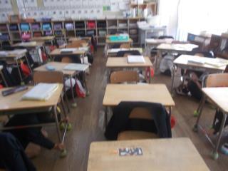 みんなしっかり頭を隠し、机が動かないように手で押さえています。