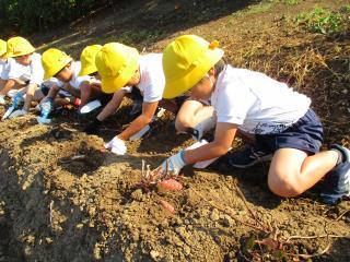 秋らしいすがすがしい晴天のもと、いもほりを行いました。