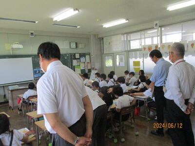 あわせて、本年度第1回目となる学校運営協議会を開き、運営委員さんに学校の教育活動についてのご意見をいただきました。子どもたちが楽しく学んでいる様子を参観いただき、学校運営方針の説明や地域の方々との学習計画などについて幅広くご意見をいただきました。