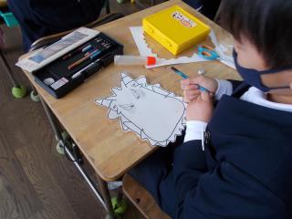 3・4時間目の図工の時間に、2年生が鬼のお面を作っていました。