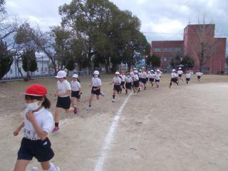 今日も昼間はポカポカ陽気となり、持久走の練習をがんばっていました。写真は5年生です。こつこつ最後まで「やり抜く力」。自分との闘いです。一歩一歩ファイト!