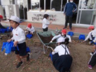 2年生が卒業式に向けて、チューリップとアリッサムの苗を植えました。