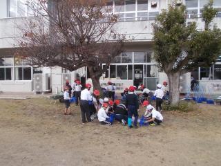2年生と5年生が一緒に持久走大会の練習をしました。