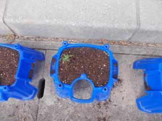 まず、鉢に土を入れ、チューリップの球根を植えました。
