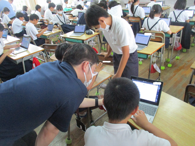 ICT支援員の三島先生とタブレットを使った授業も進んでいます。週に1、2日、本校に来ていただいたときに担任の先生と一緒に授業を進め、いろいろな機能を教えてくださいます。