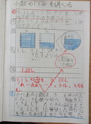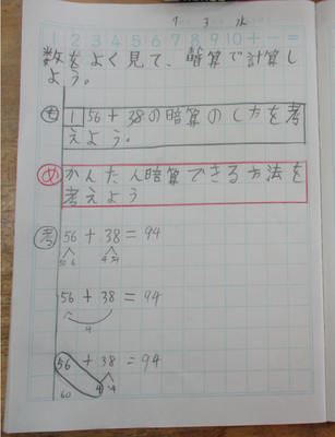 他の学級でも、今日の学習のめあてや問題、自分の考え、まとめをしっかりと書いています。ていねいにノートに書き込みをしている様子に、勉強の仕方を身につけていることが伺え頼もしく思いました。学年の発達段階に応じて、ノート指導にも取り組んでいきます。