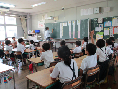 月曜日の5年生たちに続き、今日は1年生たちが第1回目の学級会を開きました。始める前に、他の学校の1年生が学級会で話し合っている映像資料を見て、学級会のイメージをつかみました。その後、司会や黒板書記の役割の人が前に出て進行し、夏休みを前にみんなで楽しい思い出をつくるためにどんなお楽しみ会をするか意見を出し合いました。フルーツバスケット、イス取り、ジェスチャーゲームなど、楽しいアイデアがたくさん出されました。賛成や反対意見を理由をつけて発表し、何に取り組むかを絞り込んでいきました。1年生でもここまでできる!!と感動の時間でした。