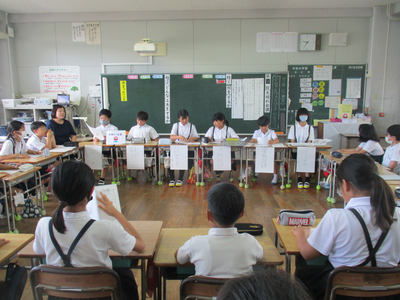 また、明日も厳しい暑さが予想されます。教室には冷房を入れていますので、どうぞ遠慮なさらず、入れ替わりながら教室に入ってご覧ください。どんな気づきをするか、どんな思いをもつのか、人権について考える学習を行います。子どもたちもがんばって発表すると思いますので、耳を傾けていただければと思います。(4年生は社会科をします)