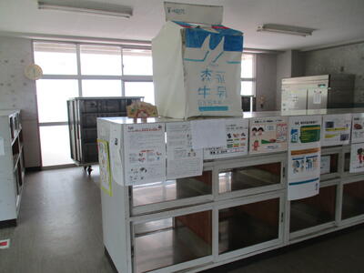 給食室にある巨大な牛乳パックは、6年生の給食委員さんが数ヶ月にわたって創り上げてくれた作品です。5日の授業参観の時に、気付かれましたか?「みんなが牛乳の飲み残しをするとこんな量になるよ。しっかり飲もうね!」との願いが込められているそうです。思いを形にして届ける、こちらもさすがですね。
