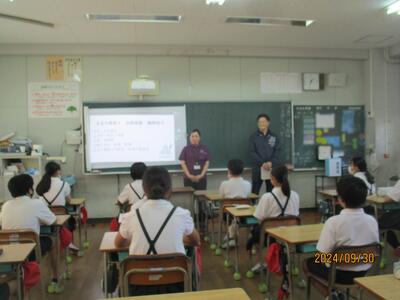 秋の交通安全運動期間中、朝の登校指導に瀬崎さんと高島さんが来てくださいました。「おはようございます」とあたたかく挨拶を交わし見守ってくださいました。鍋駐在所からもパトロールに来てくださって、多くの方々のおかげで事故ゼロが続いています。ありがとうございます。