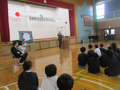 今日は小北先生から「小学校最後の読み聞かせ」をしてもらいました。子どもたちがお話のおもしろさを堪能できる絵本や紙芝居を選ばれ、朗々と語ってくださいました。耳を澄ませ、食い入るように見つめる子どもたち。卒業前に小北先生との思い出が、また一つ増えましたね。中学校でもいろいろな本、お話と出会ってください。