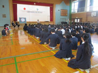 退任式、たくさんの子どもたちが出席してくれました。退任者4人の門出にあたり、あふれんばかりの感謝の言葉を伝えてくれました。大きな拍手とたくさんの笑顔、こらえきれなかった涙で、あたたかい式になりました。高道の子どもたちに出会えてよかった。高道の保護者の皆様、地域の皆様に出会えてよかった。ご協力いただき、感謝の思いでいっぱいです。高道小に勤務させていただき、私たちは幸せでした。ありがとうございました。柳井・濱田・竹部・阪本