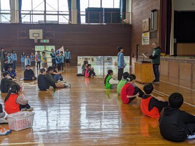 高森中央小学校の伝統でもある縦割り班活動が今年もスタートしました!!6年生が作成した縦割り班旗を掲げて、1~12班が元気に活動します!!写真は、4/24(金)の立てわい班長任命式の様子です!!