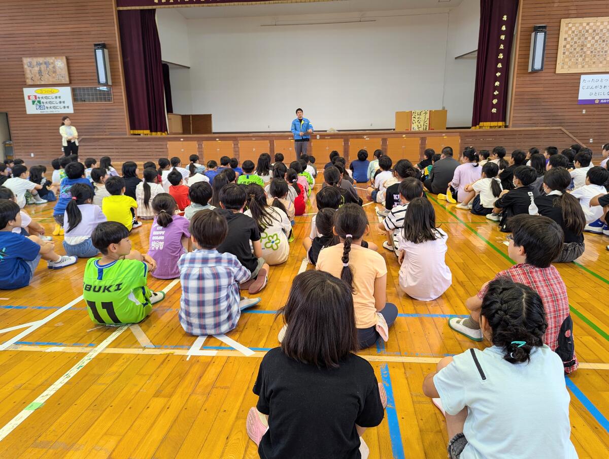 写真は、9/11(木)の4年生の様子です!!4年生の子どもたちが、隣町の山都町を訪ね、社会科見学を行う様子です。子どもたちが見学したのは、嘉永7年(1854年)、水不足に悩む白糸台地に水を送るため、矢部の惣庄屋・布田保之助によって造られた近世最大級の石造アーチ水路橋であり、石造アーチ橋の中で唯一“放水”ができる橋『通潤橋』です。一昼夜で15,000立方メートルの水を送り、水田を潤す力を備えており、現在も白糸台地の棚田を潤しています。1960年(昭和35年)に国の重要文化財に指定され、2023年(令和5年)に国宝に指定されました。