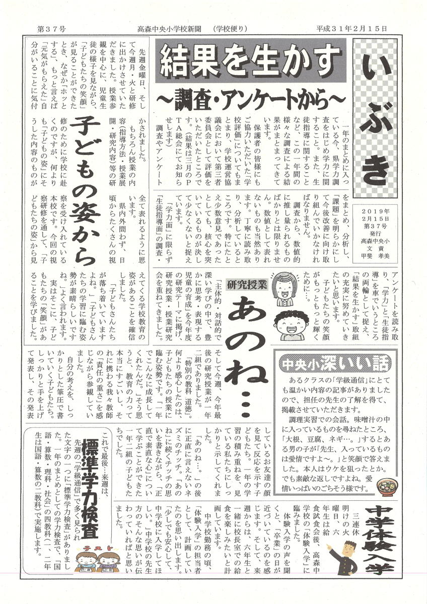 学校だより「いぶき」第37号