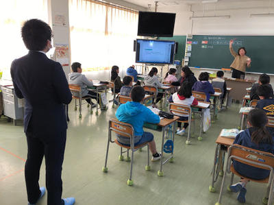 本日5時間目に、宮崎県のえびの市教育委員会様の視察訪問がありました。公開した授業は4年2組の英語遠隔授業でした。日常的に接続している東学園との遠隔授業ですが、ALTを有効活用する方法として注目を浴びているようです。授業後は、英語担当との意見交流会も開かれ、遠隔授業のメリットなどを多くの質問を受けました。また、東京よりテレビ朝日様も取材に来られました。今後注目を集める遠隔授業。今後も情報発信をしていきます!