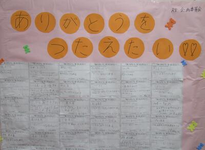 6月は、命を大切にする月刊として、各委員会ごとに取組を行いました。写真は、企画委員会が行った「ありがとうを伝える取組」を知らせる掲示物です。日頃はなかなか伝えられない思いを、短い文章にして校内に設置されたポストに投函すると、企画委員会の子どもたちが給食の時間の校内放送で読み上げてくれる。恥ずかしいけれど、思いを伝えることができてうれしい!思いを知ってうれしい!そんな子どもたちの素敵な表情を、この企画を通して見ることができました。200通を超える手紙が投函されたこの企画をきっかっけに、子どもたちの絆が深まる素敵な取り組みです。