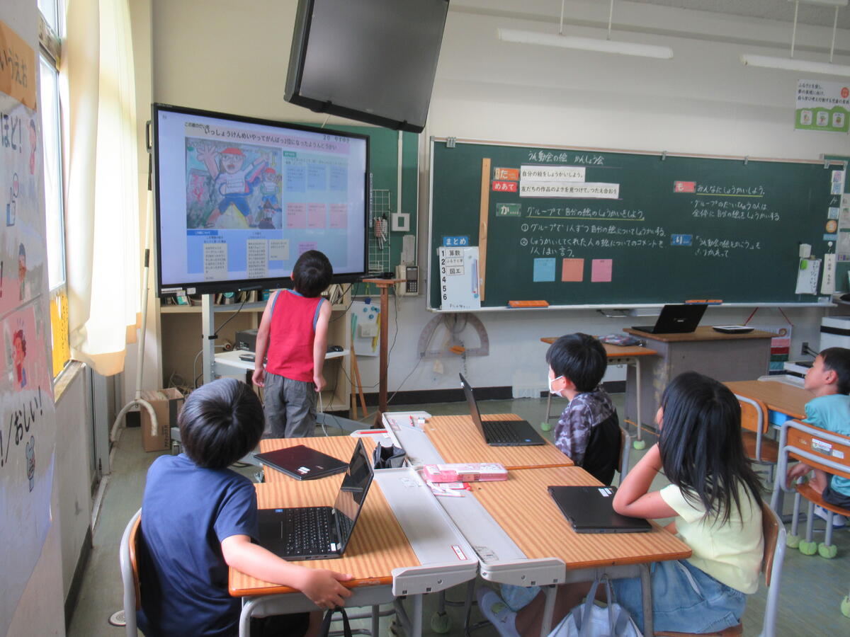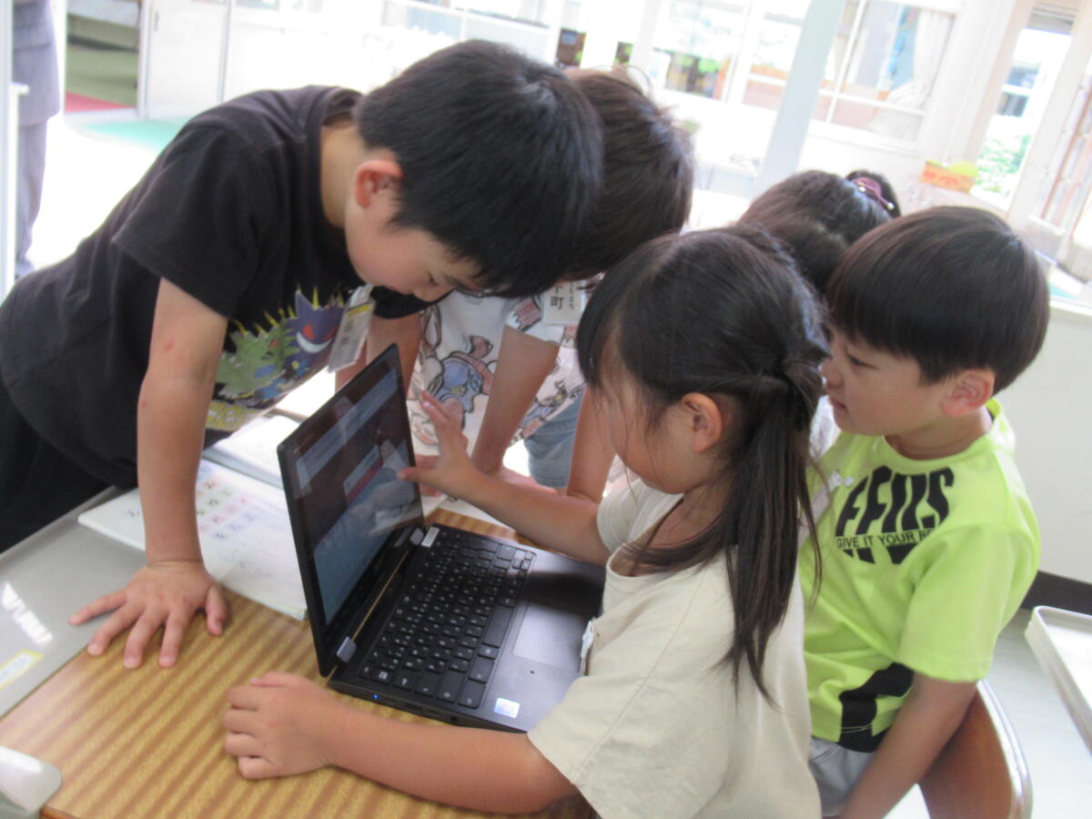 写真は、本日(7/16)3校時の5年生の様子です!本日のクリル学習がスタートするまでの短い時間にも、これまでの学習を振り返っています!クリル学習がスタートすると、オンラインで指導してくださる先生方から、今日の給食のメニューや休みの日に楽しんだことなど質問がとびます!すると、子どもたちは、スムーズに英語の文章で答えます!「えっ!いつの間にか、少しずつ自分の伝えたいことを英語で話せるようになっている!!」そんなことに気づいて、とても幸せなきもちになりました!
