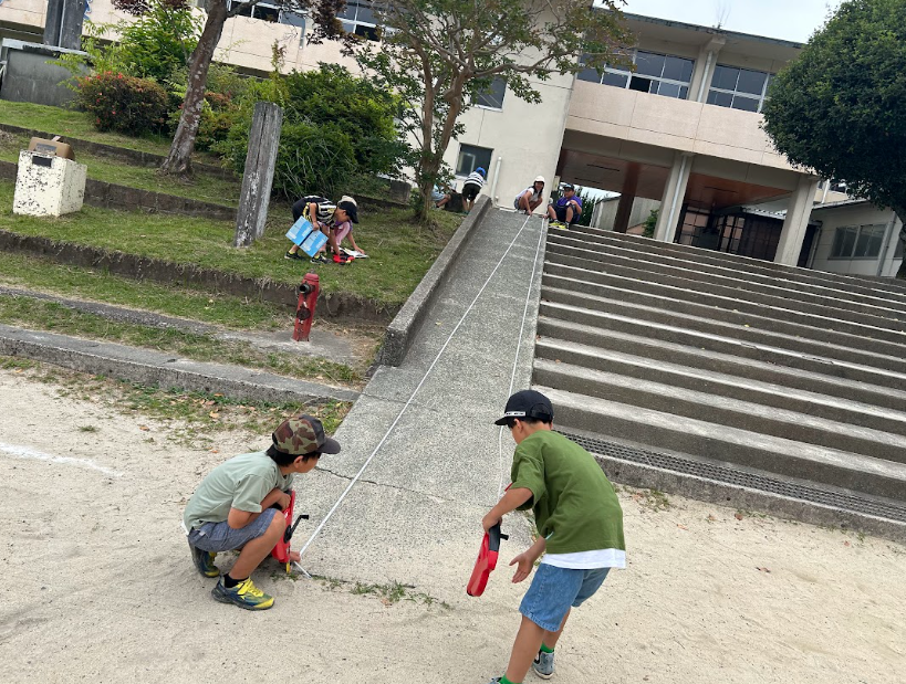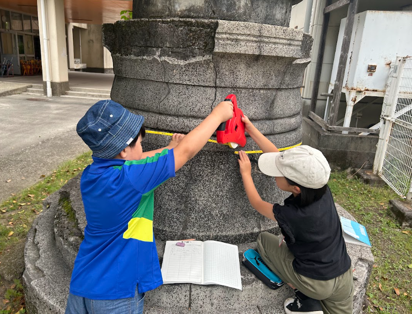 写真は、本日(6/17)3校時の3年生の様子です!算数の時間に巻き尺を持って教室を飛び出しました!算数の時間に長さを計る学習を終え、「では、実際に長い物の長さを計ってみよう!」と、チャレンジ中です!学習中の子どもたちの会話に耳をすませると、「これまでの算数で一番楽しい!!」と聞こえてきました!教わったことを実際にできるって、子どもたちにとって本当にうれしいことなのだと実感しました!