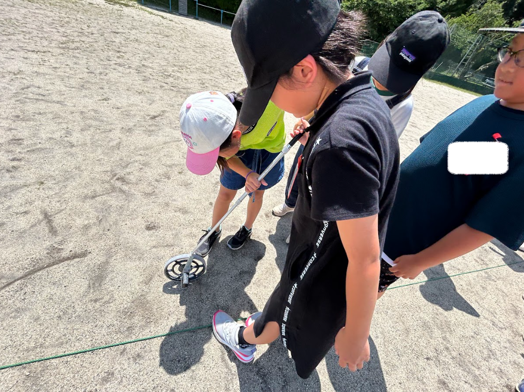 写真は、昨日(6/19)3年生の様子です!先日は、運動場へ降りるスロープや円柱の周りの長さを巻き尺を使ってはかっていた子どもたち!今度は、レベルアップ!10mってどのくらい?と計測したり、1㎞の距離を実際に歩いて体感したりしたようです!算数の時間の学びを実生活に活かす!忘れられない時間になったに違いありません!!