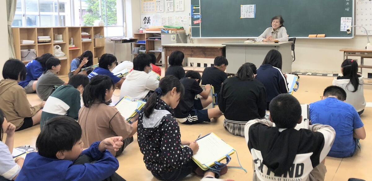 写真は、本日(6/20)3校時の6年生の様子です。来週末に行う長崎方面への修学旅行に向けて平和学習を重ねている6年生は、児童の曽祖母様をお迎えして、戦争体験を聞かせていただきました。実体験を話していただいたことで、これまで調べてきたことが現実となり、子どもたちの学びは深まりました。そして、平和を願う気持ちが強くなりました。受け継がれてきた命の大切さ、亡くなった命の愛おしさ、決して繰り返してはならない戦争のことを一生懸命に考えました。