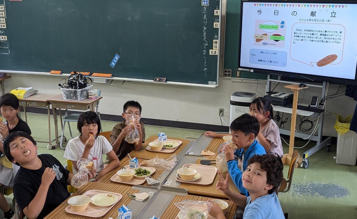 本日(6/20)の給食のメニューは、子どもたちにとって、いや、職員にとっても特別なメニューでした!そう、『きな粉揚げパン』です!おまけは、ほんの少しずつ全員で分け合って、食管のきなこもきれいに分け合って、みんなでおいしくいただきました!毎回、『きな粉揚げパン』の日には、「ねえねえ、いちばん好きな給食なあに?」どこからともなく沸き起こるこの話題で、教室は盛り上がりました!