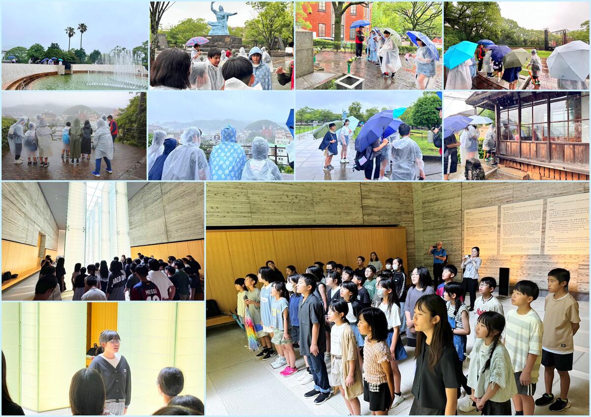 本日(6/28)から、一泊二日の日程で長崎市を訪れている高森町修学旅行団は、語り部の八木先生のお話を聞いた後、長崎市内をフィールドワークし、原爆資料館での学習も行いました。国立長崎原爆死没者追悼平和祈念館の追悼空間にて行った平和セレモニーでは、代表児童が、「長崎で学んだことを次の世代へ伝えていきます。私たちは、二度と戦争を繰り返さないことを誓います。」と、宣言しました。