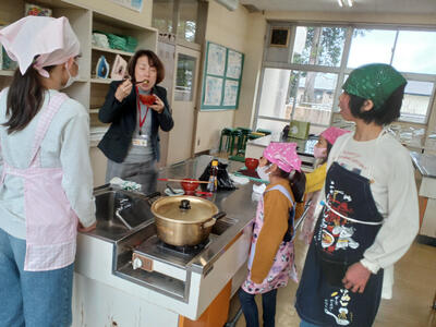 お米をご準備いただきました保護者の皆様、ありがとうございました。ぜひ、今日の調理実習をご家庭でも話題にしていただき、休みの日の朝食づくり等、子どもたちと一緒に取り組んでいただきますようにお願いいたします。