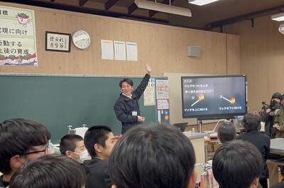 写真は、給食週間を終えて、学活の時間に学びを深める2年生の様子です。2年生は、1/31(水)5校時、栄養職員の大塚先生を教室に迎えて学習をしました。