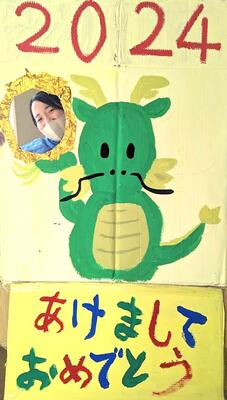 写真は、ひまわり3組の児童と先生が、全校児童が記念写真を撮ることができるようにと作成したものです。今年、2024年は甲辰(きのえたつ)です。「甲」は、草木の成長を表す意味があり、植物が成長するようにどんどん勢いを増して増えていくという意味があります。2024年辰年は、皆様にとって、昨年度まで努力してきたことが実を結んで成就する年になりますようにと、心から願います。