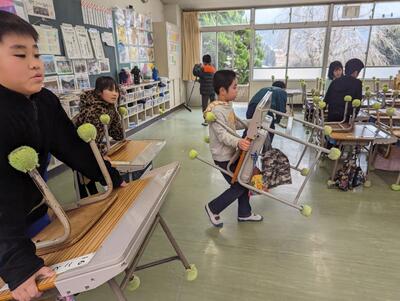 写真は、本日(1/11)5校時の2年生の様子です。音楽の時間に、わらべうたを歌いながら、遊びを楽しんでいます。ICT機器をじょうずに使いこなす現代の子どもたちでも、みんなでわらべうたを歌いながら楽しむ昔ながらの遊びが大好きです!
