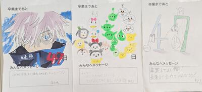 写真は、本日(1/15)6年生教室の掲示物です。卒業までの日数をカウントダウンするカレンダーを、6年生全員で制作しました。