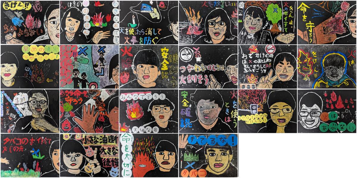 乾燥した季節がやってきました。高森中央小学校でも、過日(11/21)に、火災避難訓練を実施しました。4年生では、学習の延長として、火災を予防し、命を守るために、『防火ポスター』を作成しました。子どもたちの願いと思いがこもった作品です!