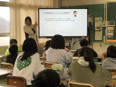 さて、写真は、昨日(1/23)に5年生で行った食育の授業です。栄養職員の大塚先生を講師に迎えて、学びの多い時間を過ごしました!給食の歴史や給食週間の始まりを学んだあとは、大塚先生から5年生に必要な栄養について教えていただきました。最後には、子どもたちから大塚先生に質問がたくさん出され、給食センターでは7名の職員の方が様々な仕事を週ごとに交代で担当しながら作られていることなどを知ることができました。