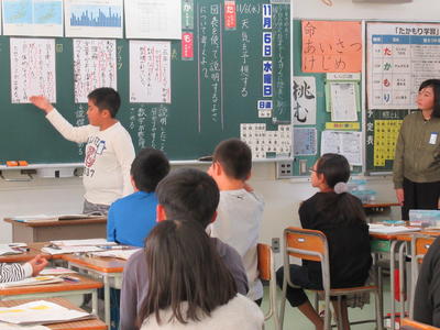 11/6(水)5校時は、本日2回目、本年度9回目の研究授業でした。本研究授業は、5年生国語『天気を予想する(光村図書)』めあて「図表を使って説明するよさについて考えよう。」でした!本研究授業は、阿蘇教育事務所より、松原指導主事を迎えての講師招聘授業でもありました。授業後の研究会で、松原指導主事よりいただきましたお話をご紹介いたします。