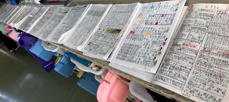 さて、本日はその自主学習(自学ノート)の取組ができる素地にあるもの、1・2年生の学習の様子を漢字ノートにしぼってご紹介します。何度も何度も、満足がいくまで書き直しながら、先生方のアドバイスを守りながら学習を進めたことがわかるノートです。この地道な取り組みがあるからこそ、中学年・高学年の進んで学ぶ姿が育つのだと感じます。