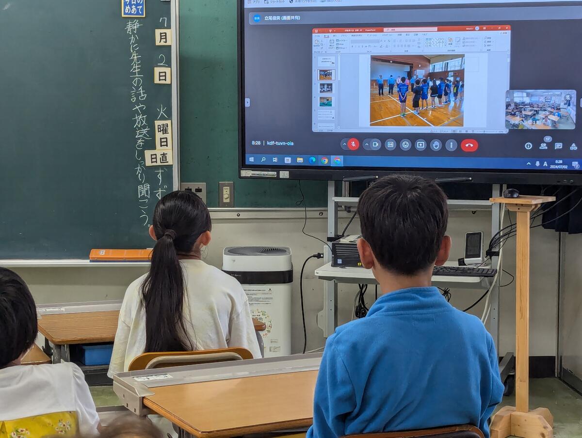 写真は、本日(7/19)1校時の夏休み前集会の様子です。校長先生と一緒に、一学期前半の4か月を写真と共に振り返った子どもたちは、とても嬉しそうです。「そんなことあったね!」「ぼくたちのことだ!」「思い出した!」子どもたちから聞こえてくるつぶやきが、とても心地よく、いっしょに大切な時間を紡ぐことができたことに感謝でいっぱいになりました。