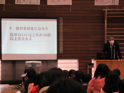 写真は、本年度4回目の研究授業の様子です。5年生英語科「What do yuo have on Monday?」めあて「英語でオリジナル時間割クイズのやり取りを楽しもう」をもとに、他者に配慮しながらそれぞれの夢につながるオリジナル時間割について、質問したり自分の考えを伝えたりしました。友だちとのやり取りで得た情報を整理し、好きなことやなりたい職業について既習の表現を使って考える姿、互いの考えを伝え合うことで気づきを促し、自分の考えを深める姿が見られました。即興性・必然性が求められる英語科においての深い学びを実感できた、学びの大きい校内研修となりました。