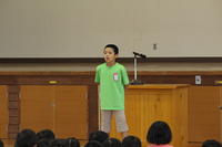夏休み4日目の7/24(火)、阿蘇小学校を会場に「阿蘇郡市童話発表会」が行われ、本校からは2名の児童が高森中央小学校の代表として参加しました。高学年代表として出場した6年生児童は『ある犬のおはなし~殺処分ゼロを願って~』、低学年代表として出場した児童は『かぶと四十郎~夕日のカブトマンの巻~』というメッセージ性のある素敵な物語を選び、練習を重ねてこの日を迎えました。(写真は、夏休み前集会で、発表した様子です。)