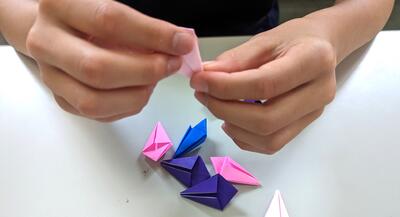 さて、今日の図書当番の6年生は…カウンターで当番の仕事の合間に、千羽鶴を折っています。「修学旅行で長崎に届ける鶴です。丁寧に折っています。」と、話してくれました。素敵な光景が、学習センターにあふれていました。