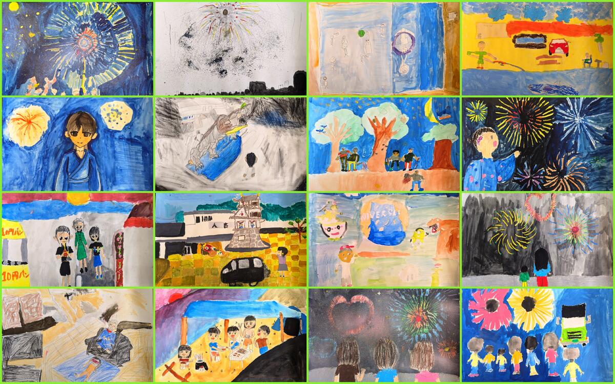 2年生の子どもたちが描いた夏の思い出は、高森町の伝統的な祭り『風鎮祭』!花火も造り物も、にわかも、子どもたちの心に色鮮やかに印象付けられたことが伝わります!!表現力豊かな2年生!!すくすく成長中です!!