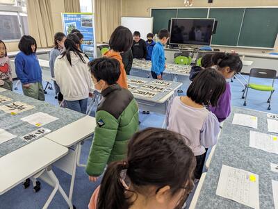 写真は、本日(1/30)昼休みの様子です!3年生の子どもたちが、ひまわり3組に集まって、楽しい時間を過ごしています。ひまわり3組では、全校児童を楽しませようと、手作りの遊び場を用意して、定期的に「ひまわり3組まつり」を開催するのです!本日は、3年生を招待したようです!招待した側も、招待された側も笑顔になる!「ひまわり3組まつり」は、高森中央小学校の宝物です!