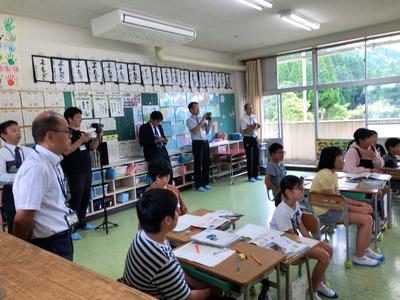 10/1(火)、山口県美祢市より視察にお越しいただきました。本日は、4・5・6年生のICT機器を活用した授業(タブレットPCの活用・遠隔授業)を参観いただきました。授業後には、短い時間ではありましたが、情報交換させていただく機会もあり、本校職員にとってもたいへん学びの多い時間となりました。児童下校後の職員室では、本日視察にお越しいただいた皆様よりいただいた質問について話題にし、より効果的なICT活用について意見交換しました。